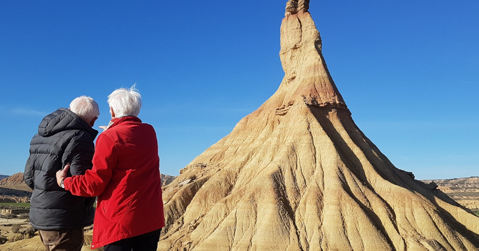 Written by Stephanie Mutsaerts Photos by Jesus Caso and Stephanie Mutsaerts Truffle Hunting in Northern Spain Today is a day for truffle hunting and Bardenas desert crossing. At 10 o’clock on Saturday our Northern Spain Travel Guide arrived to drive us south west of town to a tiny village where we met two men – father and son – Angel and Raul. We also met their two scruffy dogs – Sara and Tommy. As a group we all set off to their holm oak plantation – ta dah – drum roll- in search of truffles!!! Yes, truffles are considered to be “black diamonds” in Spain and these two men cultivate holm oaks, the roots of which support the growth of knobby, dark, rather ugly, but totally delicious truffles. The dogs are trained from an early age to smell the truffle odour and indicate where the black diamond is to be found. We were hoping to witness such a moment. Into the Truffle Plantation The plantation we visited is just over 6 acres in size and is home to 770 trees, all neatly planted in rows, suitably spaced. Only about 100 of the trees are supporting truffles – the rest not having developed the required ability to “foster” them. The trees are planted in very rocky ground – this is supposed to provide a good supply of nourishing calcium for the trees but does not provide easy walking for humans – we wobbled and tottered over the rocks, trying to be dignified as we did so. Of course the rough walking was no problem for Tommy and Sara who dashed about, thoroughly enjoying their outing beneath the trees. We also noticed large numbers of abandoned, small, fragile, white snail shells – but not a sign of a live snail anywhere. A mystery! Truffle Hunting Dogs Tommy was just as interested in making friends with us as he was in serious hunting, constantly coming to us for a pat and a rub on his dirty and knotted long haired coat! I got the feeling that truffle hunting was not high on the dogs’ agenda – just having fun in the woods was more to their liking. We walked, back and forth, back and forth. At the eleventh hour, as if to save the day, Tommy stopped at a tree and indicated that there, at that spot, was hidden treasure. Angel knelt down at the base of the tree, carefully placing his knee of a special truffle hunting cushion. With sharp digging knife in hand he removed the surface rocks and broke through the soil. Not such a treasure it turned out to be but rather an over-ripe and pretty putrid truffle it was…. stinky as could be and full of maggots. Angel quickly broke it up and put the dirt and rocks back on top of it. Such a disappointment. But, the exercise and fresh air did us good! The Truffle Plantation We talked as we walked through the plantation and learned that once a tree becomes productive it can produce for only 10 – 15 years. Once past its truffle-bearing years it must be allowed to grow old at its own pace until the plantation becomes a fully developed oak forest. Under law the trees may not be cut down and the land may not be replanted. While at first this seems a little harsh it is all part of a government program to reforest the area that once, years ago, before it was cleared to produce crop lands, was covered in trees. Crossing the Bardenas Desert in Northern Spain The Bardenas Reales In the car once more we headed to The Bardenas. Now, the Bardenas is a semi-desert area in the south of Navarre – a landscape of wind-swept and eroded clay, chalk, and sandstone hills, mesas, and escarpments. I have seen photos of the dramatic landscapes and have long wanted to go there and, finally, my wish was to come true. The landscape lived up to every one of my expectations, and very much more. Here were vast stretches of plane, dotted with greyish/greenish scrubby plants, dried gullies, collapsed mud towers and pinnacles, wind scraped slopes, rainwater-washed mounds, tortured trenches, and occasional simple dwellings which provide housing for shepherds in the seasons when sheep graze this semi-desert. Game of Thrones Zone No wonder this place has become a popular backdrop for movies such as Game of Thrones. It was all breathtakingly beautiful with the landscape colours of yellowy beige, dusty orange, dull greys and greens, set against a brilliant blue sky. We drove through the area (it is now a UNESCO heritage site), stopping occasionally to admire, walk a little, and take photographs. I’ve seen several deserts around the world, each one of them different, and The Bardenas is different again. I just love deserts and find their beauty compelling. This desert is one of the winners. The Bardenas desert crossing is part of a Northern Spain Tour called Shepherd’s Way by bike tour