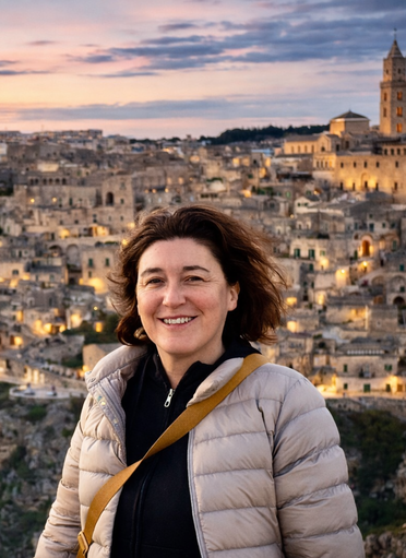 Architecture, medieval history, art and local mythology are her natural language. Streets become stories. Stone façades reveal forgotten lives. Quiet corners turn into stages where centuries still whisper. And nowhere feels closer to her heart than Santillana del Mar — a place she knows not just by memory, but by meaning.